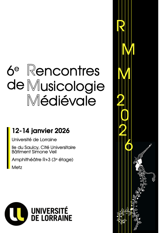 Congrès « 6e Rencontres de Musicologie Médiévale », Université de Lorraine, Metz, 12-14 janvier 2026.