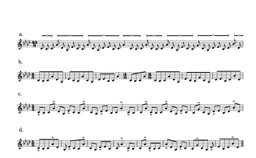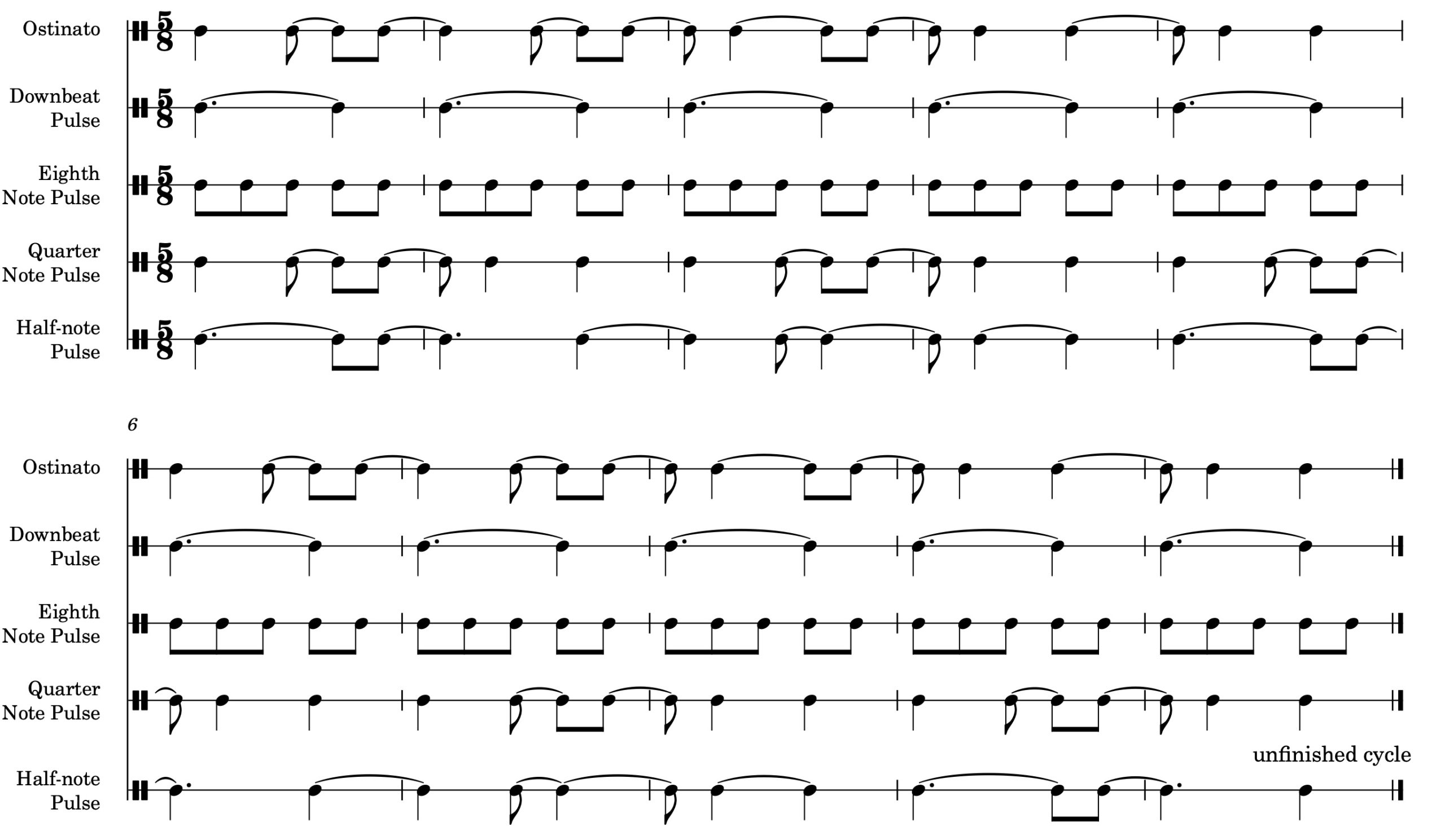 Figure 1: Grouping possibilities for the ostinato in “New Maps.”