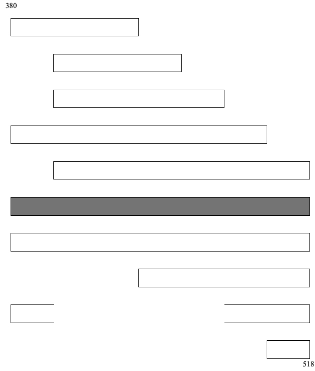 Figure 17: Psappha, section 380-518. Alternative paradigmatic representation of the segmentation of this section, based on the longest pattern (in grey) and considering the others to be variants of this pattern. The superimposition of consecutive patterns identifies sequences that are similar from one variant to the next.