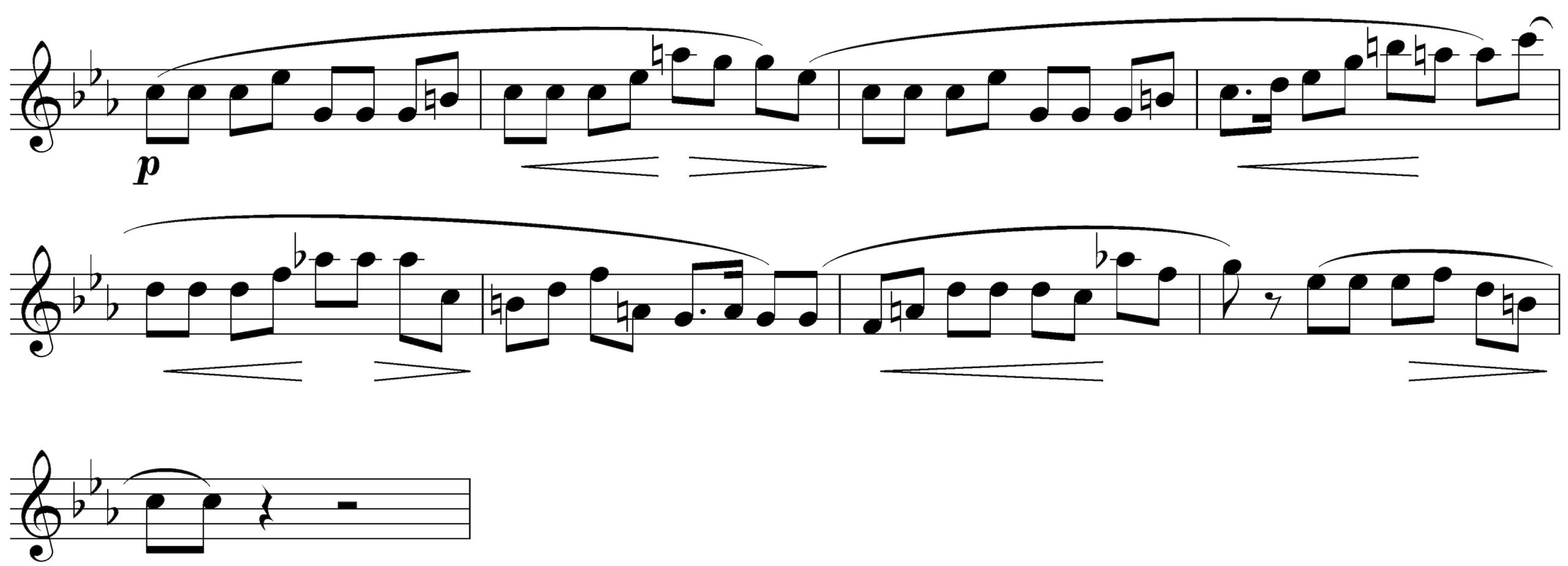 To demonstrate RSE, I recorded the first nine measures of the oboe part of Gordon Jacob’s Oboe Quartet (1938) in three different ways as I introduced, above: